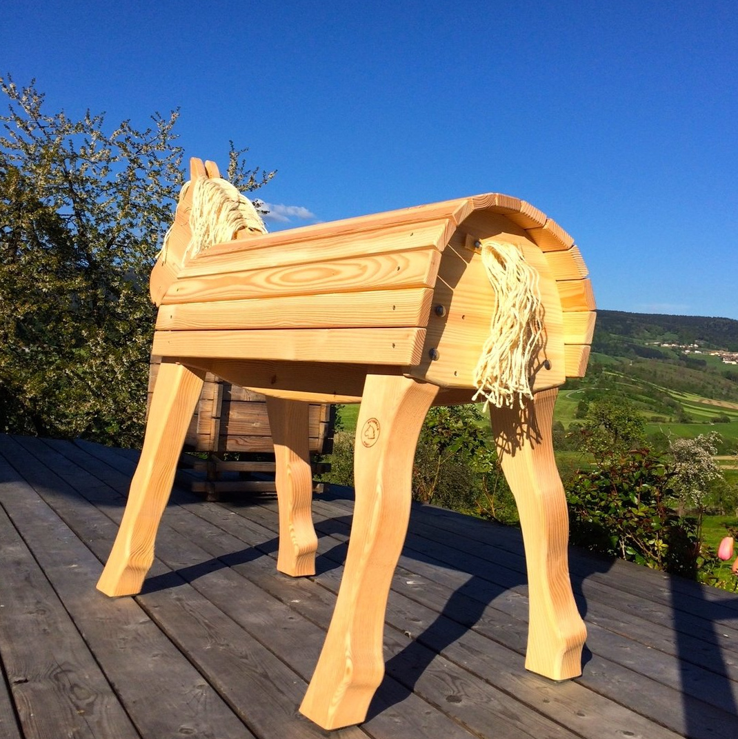 Ein Pferd für fantasievolle Abenteuer oder Reiterhof-Spiele. Ein duldsamer Freund, der Kinder-Geheimnisse immer für sich behält. Pferdchen "Aurora" ist ein Spielzeug, das Fantasie und Bewegungsdrang deiner Kinder anregt und unterstützt. Meist lernen die Kinder schnell das Auf- und Absteigen und Turnen auf dem Pferd, ohne dass ein extra Tritt benötigt wird. Dabei hält das robuste Holztier auch wilde Spiele aus.